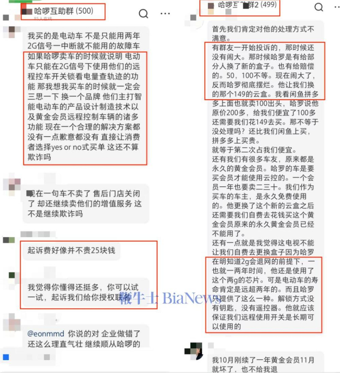 近日,《BUG》栏目进入多个累计超千人的哈啰车主维权群。大量用户反馈,自己的哈啰电动车出现“断服”,远程定位、在线查看电量等多项“永久会员”功能已经消失,有的甚至还在骑行中忽然“断电锁死”,险些酿成车祸。
