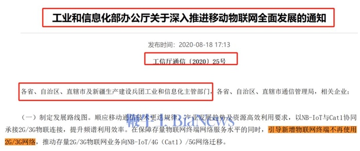 《BUG》栏目注意到,早在2020年8月,工信部就曾印发《关于深入推进移动物联网全面发展的通知》,要求“引导新增物联网终端不再使用2G/3G网络”。