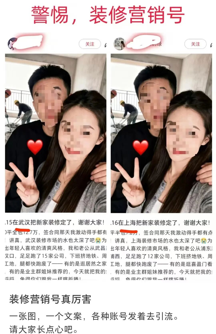 有网友吐槽:“我在武汉和上海的账号里都刷到过同一对夫妻,IP地址换了,人没换,一看就是营销号。”还有网友分享了自己的上当经历:“私信获取推荐名单后,不仅没拿到有用信息,反而被十几家装修公司轮番私信轰炸。”